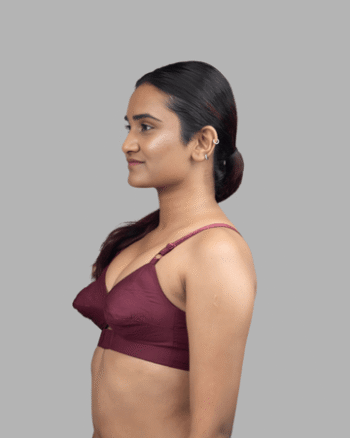 • Cups: Non-padded, seamed (multi-part) construction for structure.